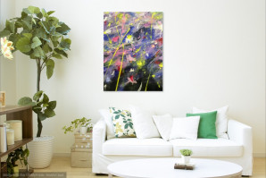 Violet splash blossom is an acrylic painting on canvas of nature.