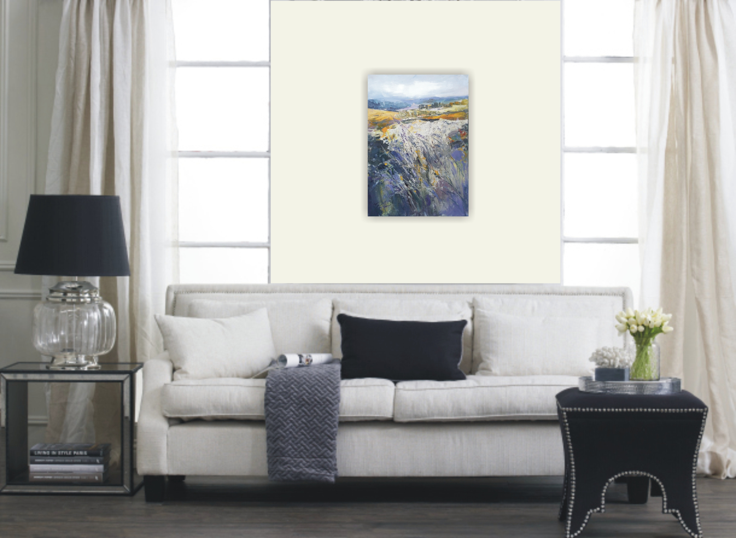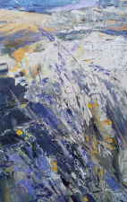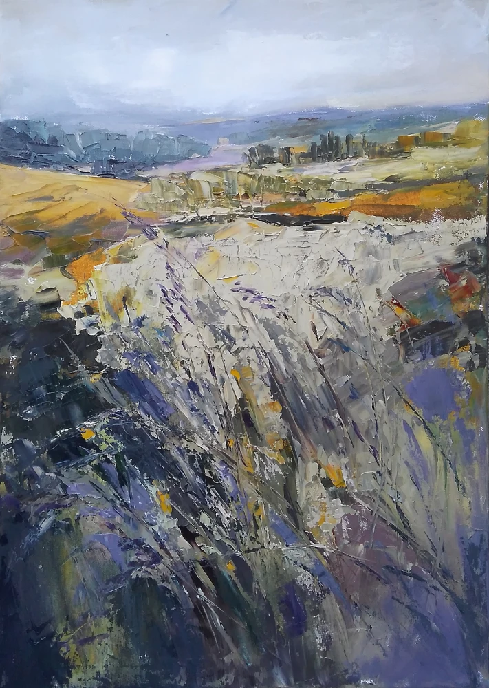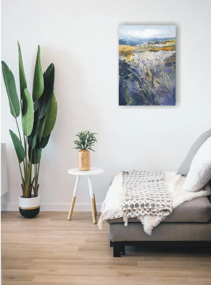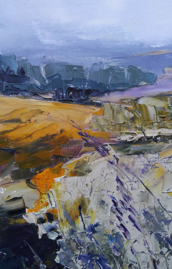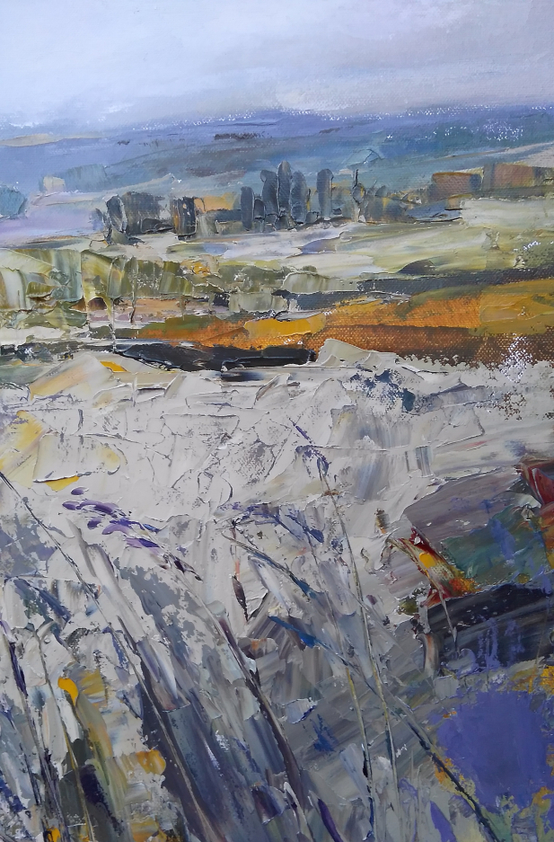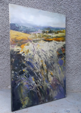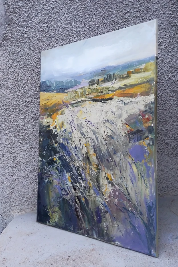 This painting is part of my field series. My freedom-loving personality was always been drawn by the fields. I love the feeling of endless, freedom and reverie that the fields evoke in me. I love painting them. While painting I feel the gentle wind playing all around me, I hear the whispers of the grass, I feel my soul floating towards the horizon… and I am happy. Hope you are too when looking at these paintings.