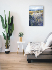 This original oil painting is made on stretched cotton canvas. Size is 50x70cm. Depth 1 cm. Canvas is gallery wrapped and painted on the sides, so the painting could be hang as it is without a frame if preferred.