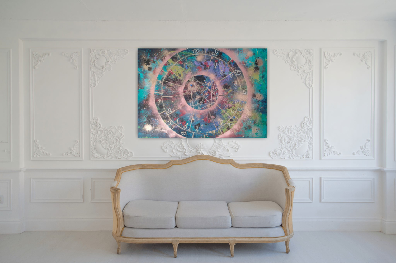 The semi abstract painting was inspired by real zodiac of Leonardo da Vinci.