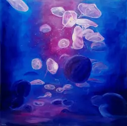 I'm an artist currently living in Warsaw. Experimenting with different media where I combine oil, acrylic paint, ink, chemical substances, natural pigments, and also dyes used in microscopic examinations. All of them combined to bring out unique and intensive colors.